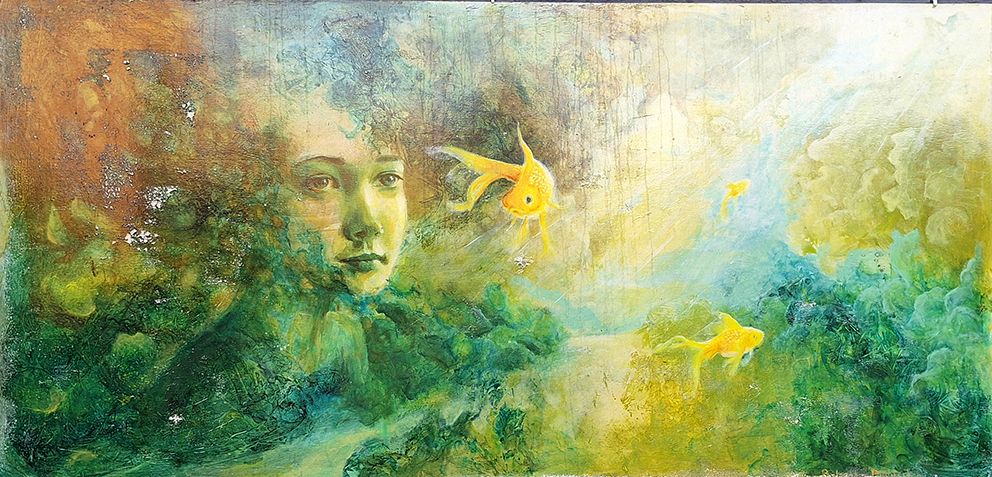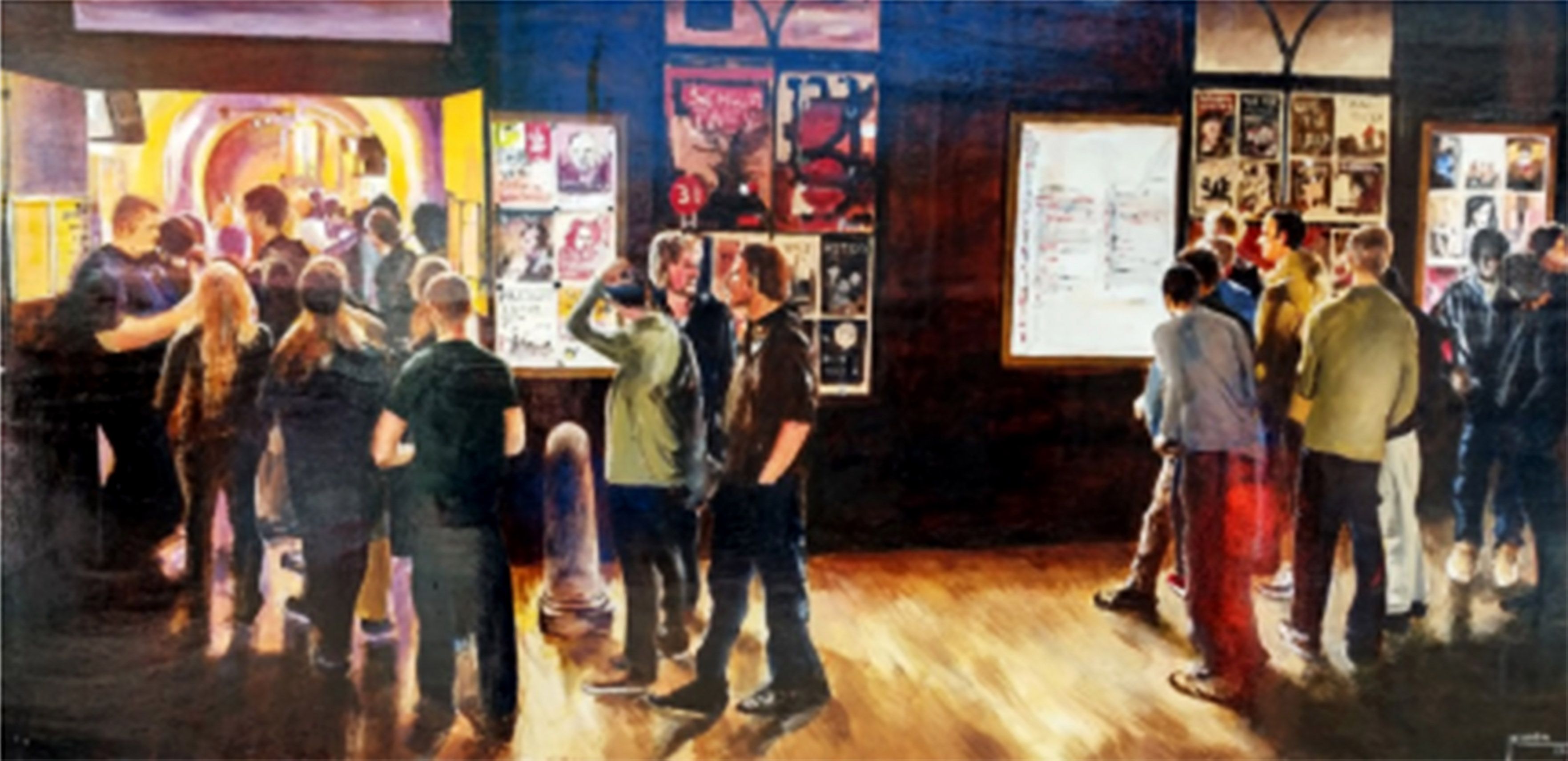 Overdracht van een ge-voel, emotie of sfeer vindt de kunstenaar belangrijk in haar werk. Meestal gebruik ze hierbij landschappen. Dit keer laat Claire mensen zien die muziek horen en iets geweldigs zien gebeuren.