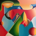 Joop schildert abstract en kleurrijk met een creatieve verbeeldingskracht. Soms gebruikt hij figuratieve elementen. Deze gepassioneerde figuren geven een extra dimensie aan zijn werk en maken je vrolijk. Voor verbeelding blijft veel ruimte over. Hij schildert zonder voorbeeld naar eigen fantasie waarbij het uitgangspunt is dat er iets ontstaat wat er nog niet is. -
