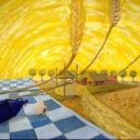 Ik woon in Arriën. Behalve dat ik als molenaar bezig ben, heb ik veel hobby’s, waaronder tekenen en schilderen. Acryl is mijn favoriete verf omdat je het op heel veel verschillende manieren – waterdun, pasteus, dik – kunt gebruiken. Het idee, dat ik in mijn hoofd heb, groeit langzaam en verandert dikwijls tijdens het schilderen. -