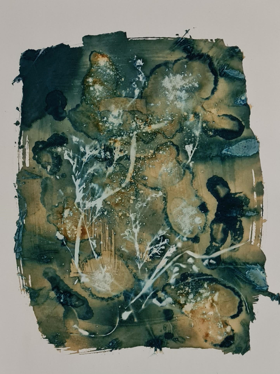 Cyanotypie is een oud fotografisch proces van 180 jaar geleden, waarbij na ontwikkeling een cyaan-blauwe afdruk ontstaat.