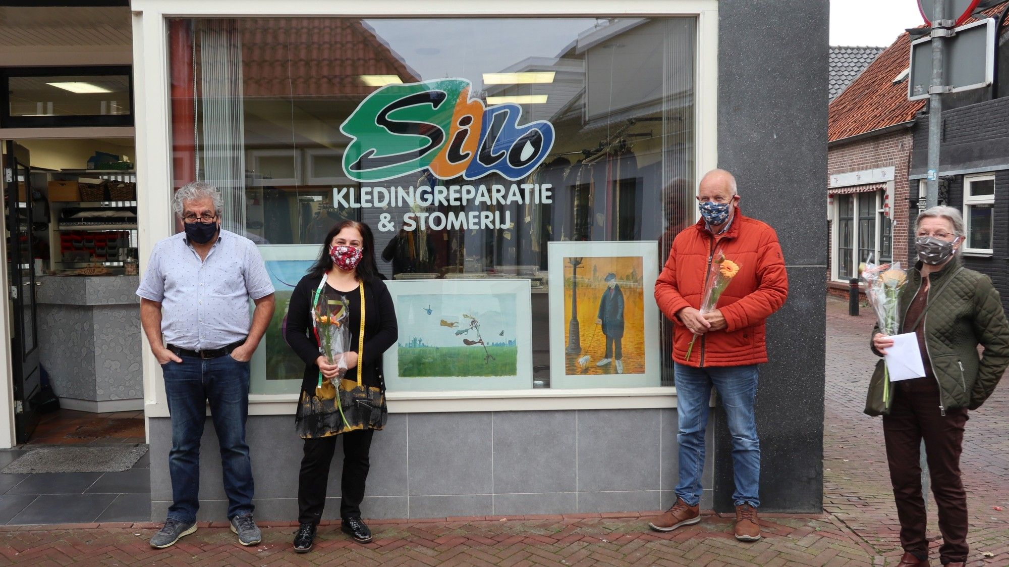 De meest aansprekende etalage van de Kijk op Kunst 2020 is door een jury bepaald en onlangs bekendgemaakt. Door de corona heeft de prijsuitreiking alleen met de direct betrokkenen plaatsgevonden. De grote winnaar is ‘Silo, Kleding reparatie en stomerij’ met schilderijen van Luuk Vogelzang.